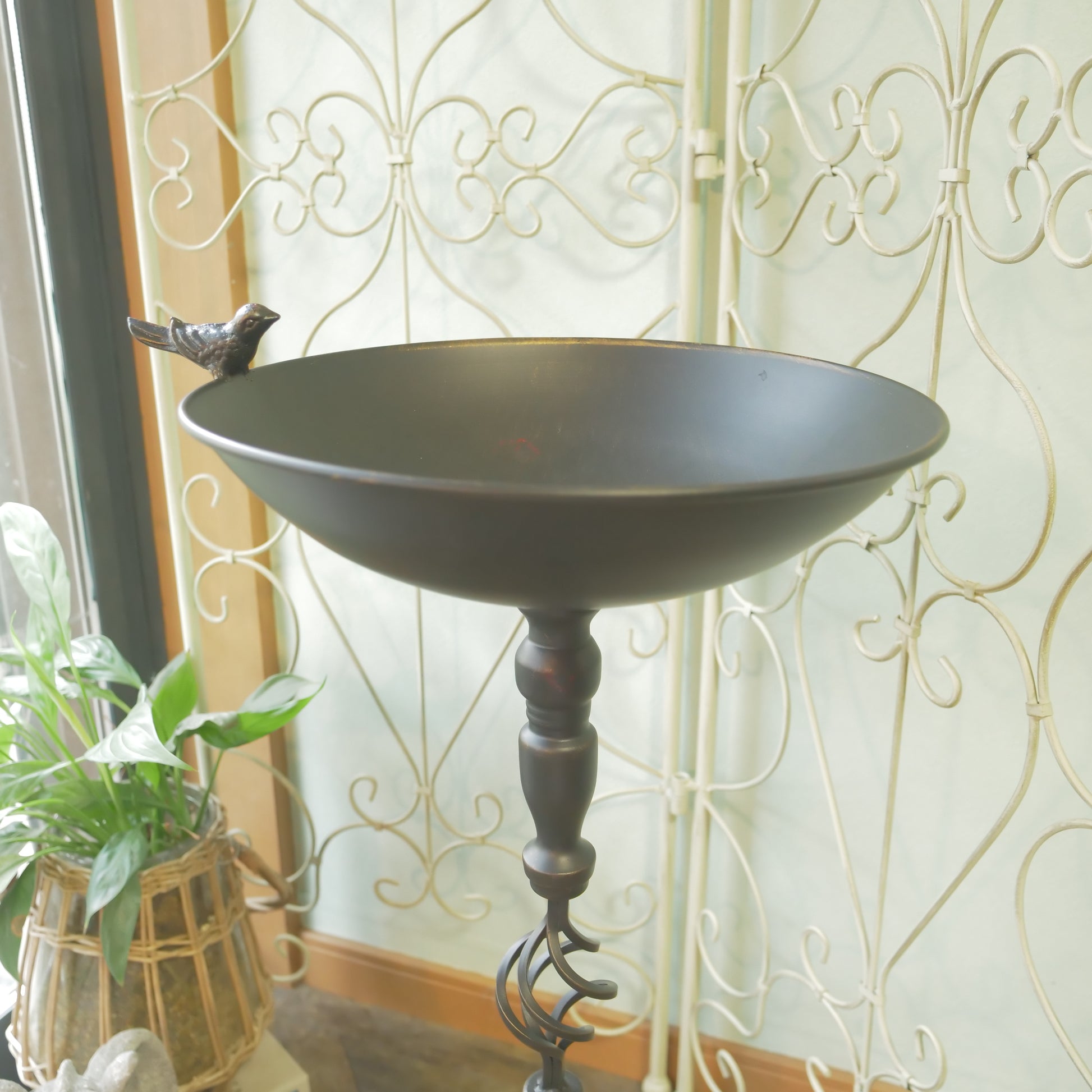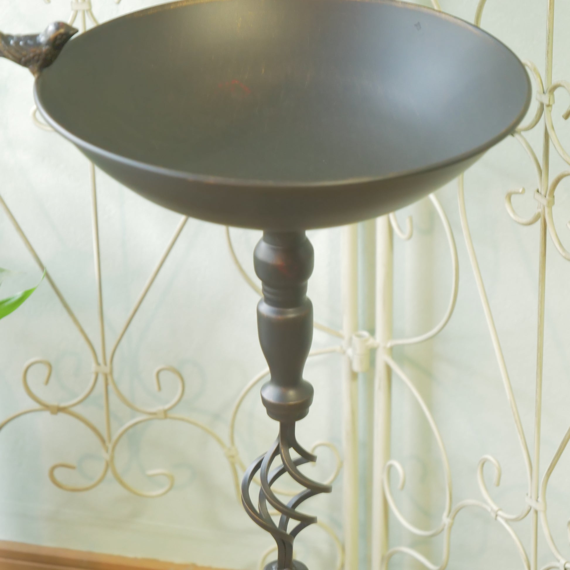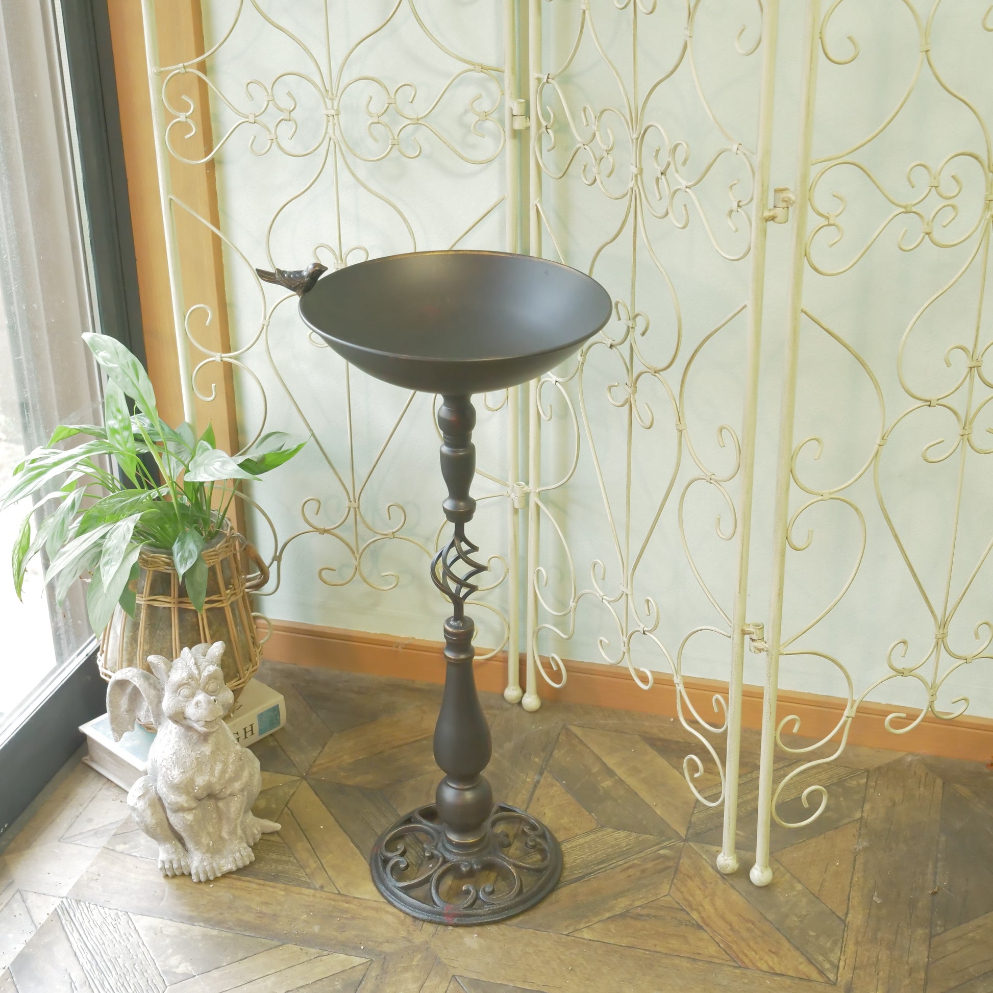 シックな雰囲気のアンティーク調のバードバスになります。鳥のモチーフ付きで、細かくデザインされていて、見た目も素敵です。存在感がありますので庭に置くとグッとおしゃれになります。お花を飾ったり、庭のインテリアとして楽しめます。