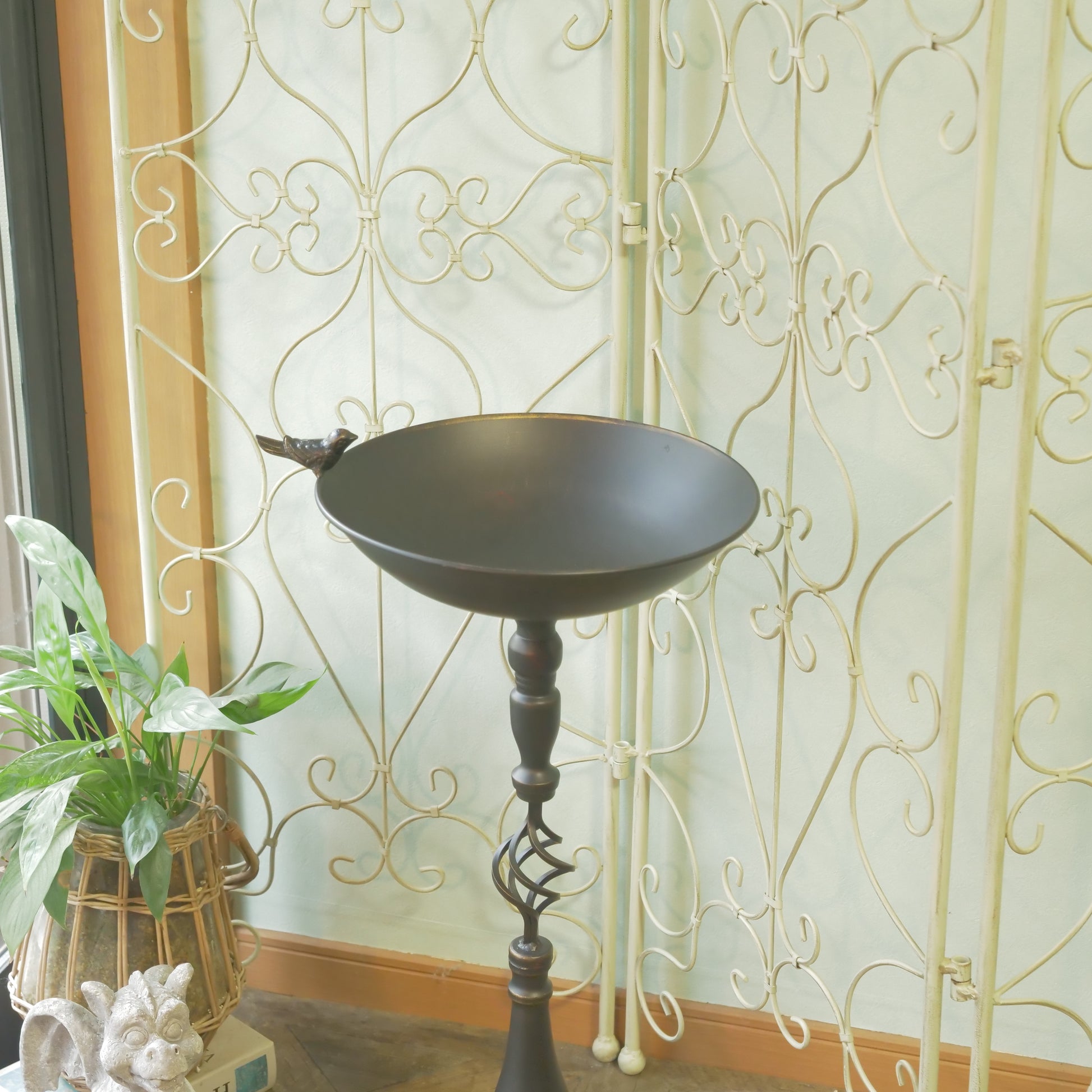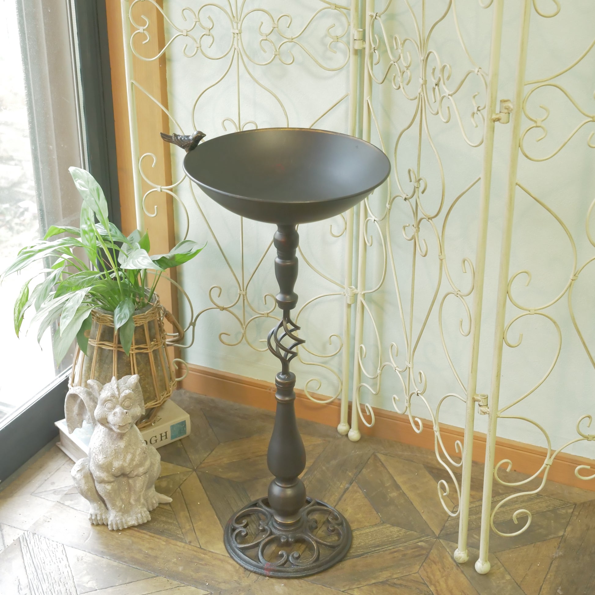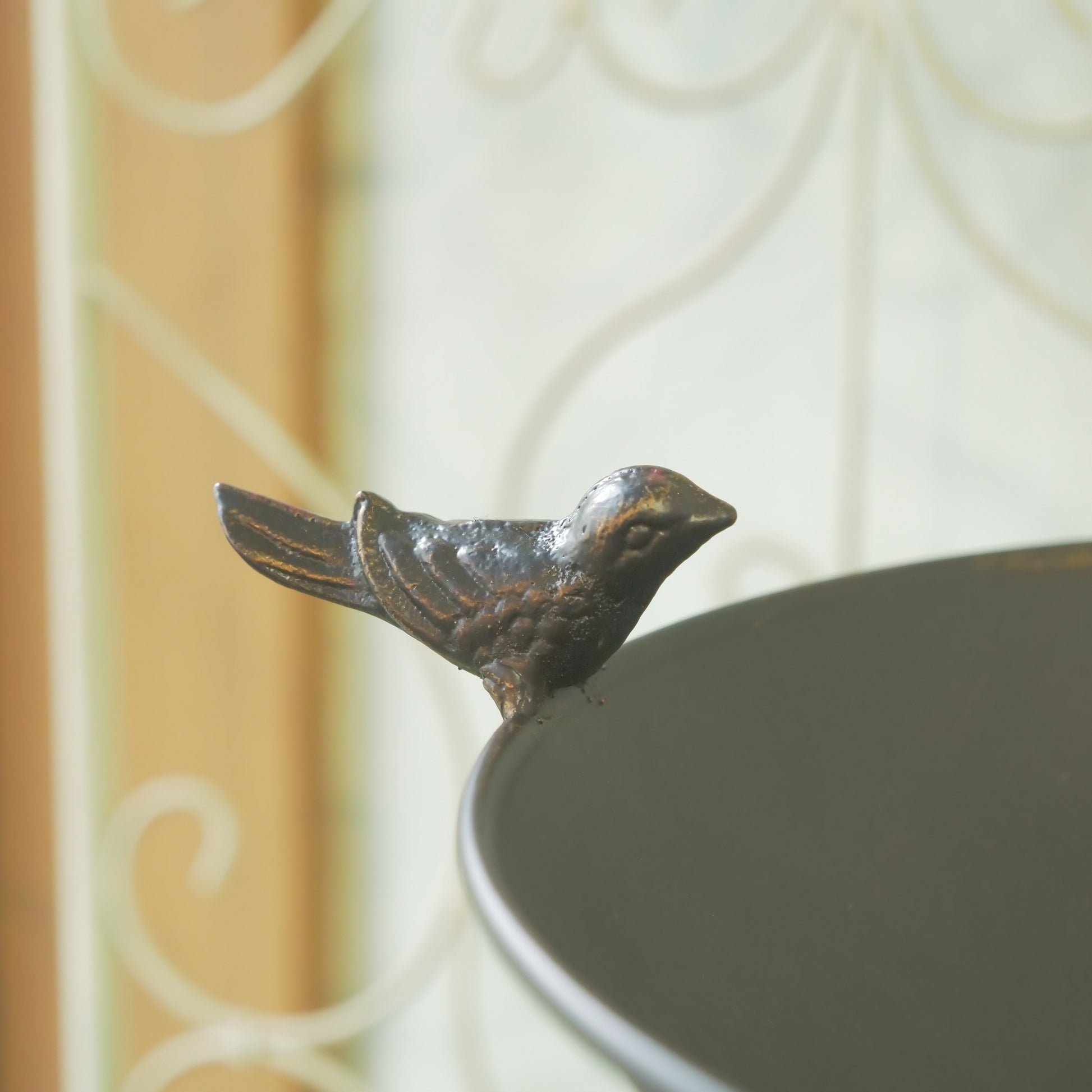 シックな雰囲気のアンティーク調のバードバスになります。鳥のモチーフ付きで、細かくデザインされていて、見た目も素敵です。存在感がありますので庭に置くとグッとおしゃれになります。お花を飾ったり、庭のインテリアとして楽しめます。
