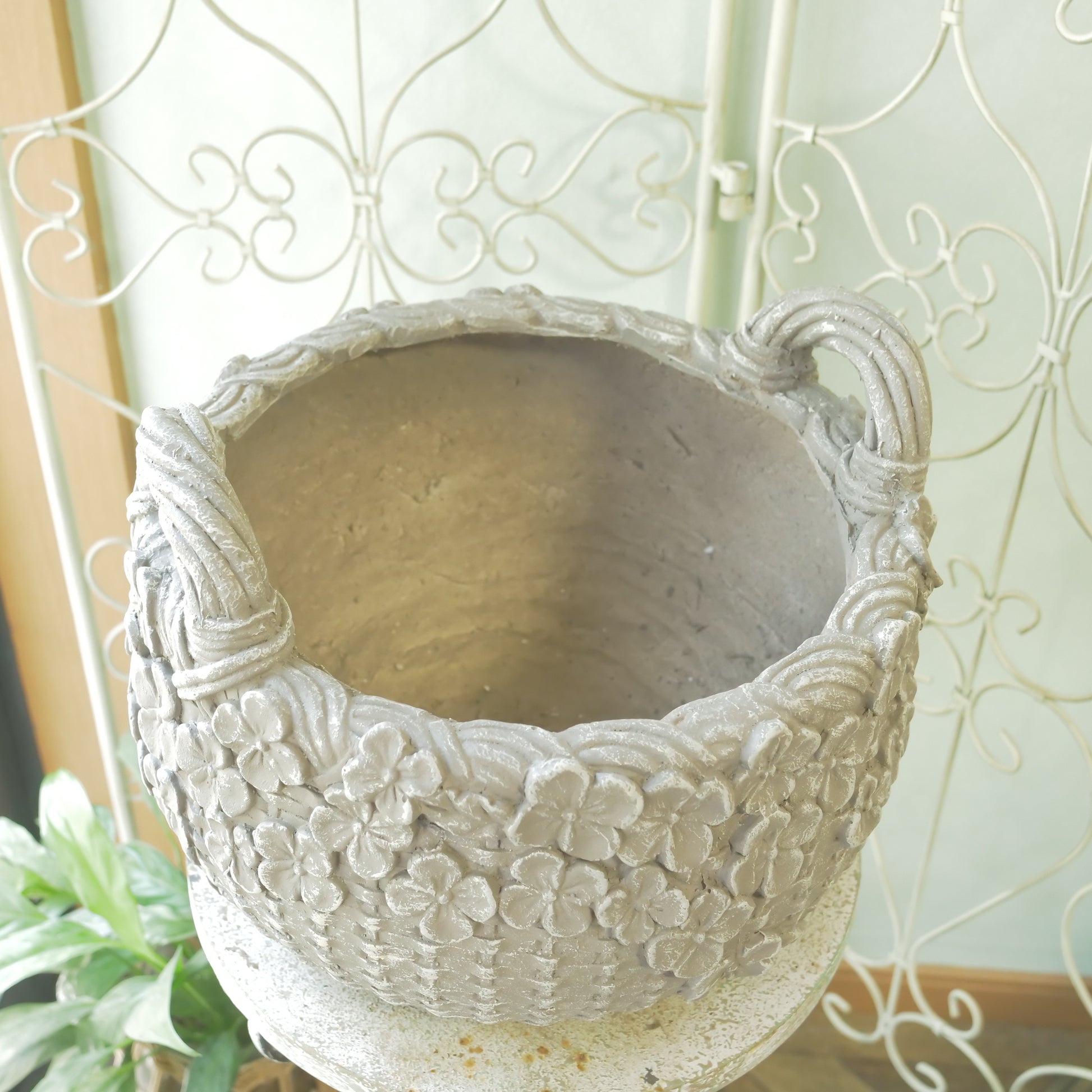 サイズ W32×H23cm 内径25㎝ 素材 グラスファイバー 全体にはアンティーク加工がされており、汚れや欠けたような加工がされています。 グラスファイバー製なので、チクチクする場合があります。手袋をして植えて下さい。 |