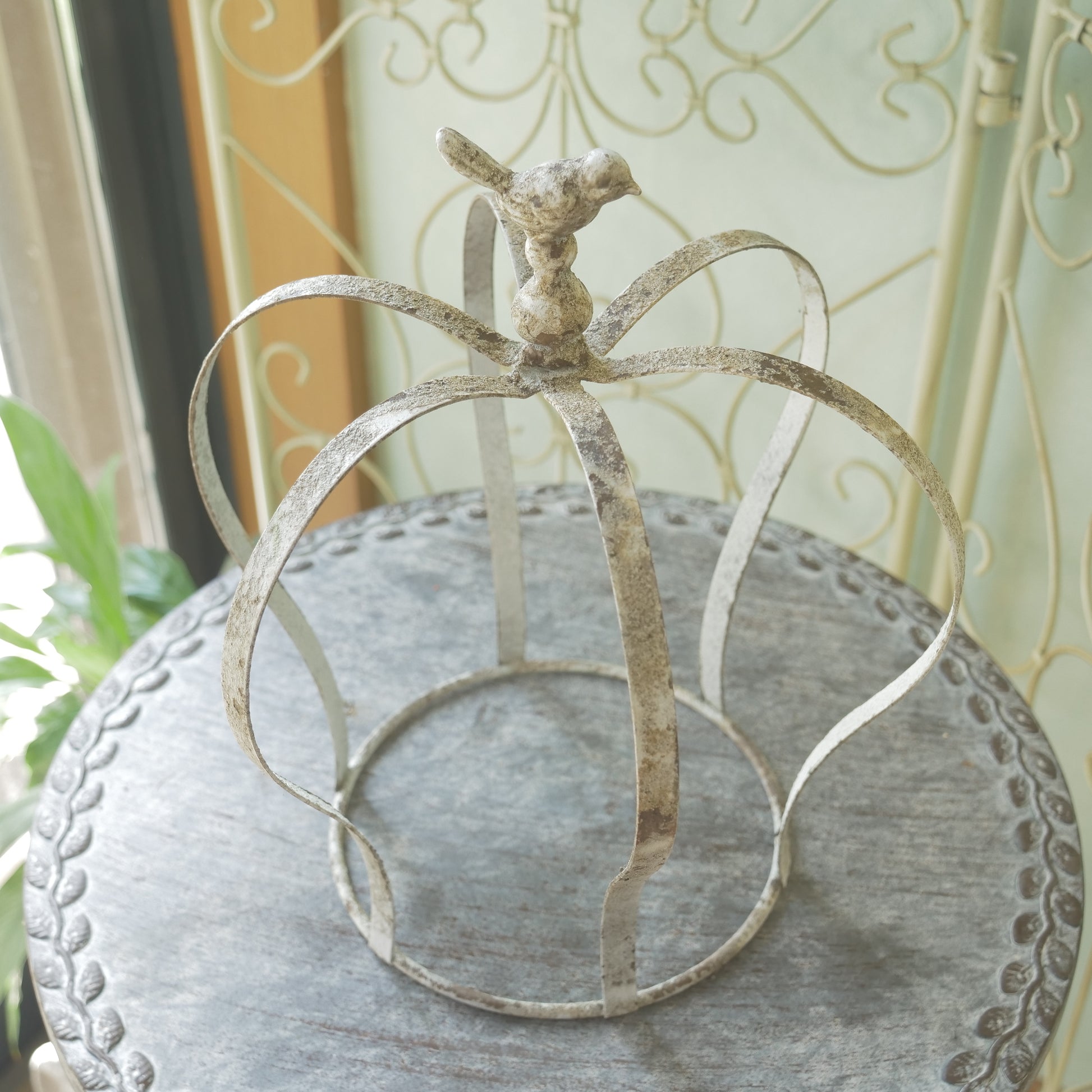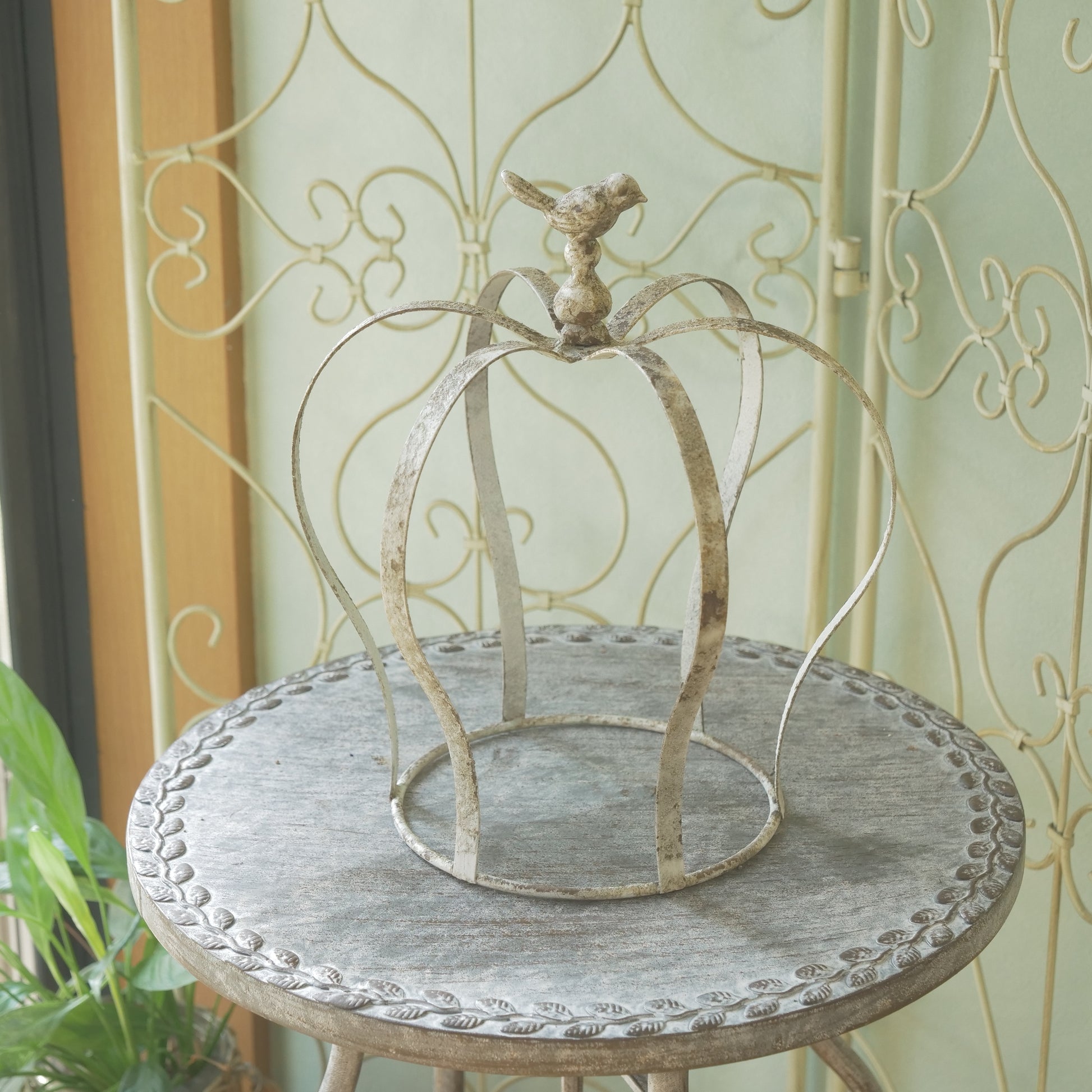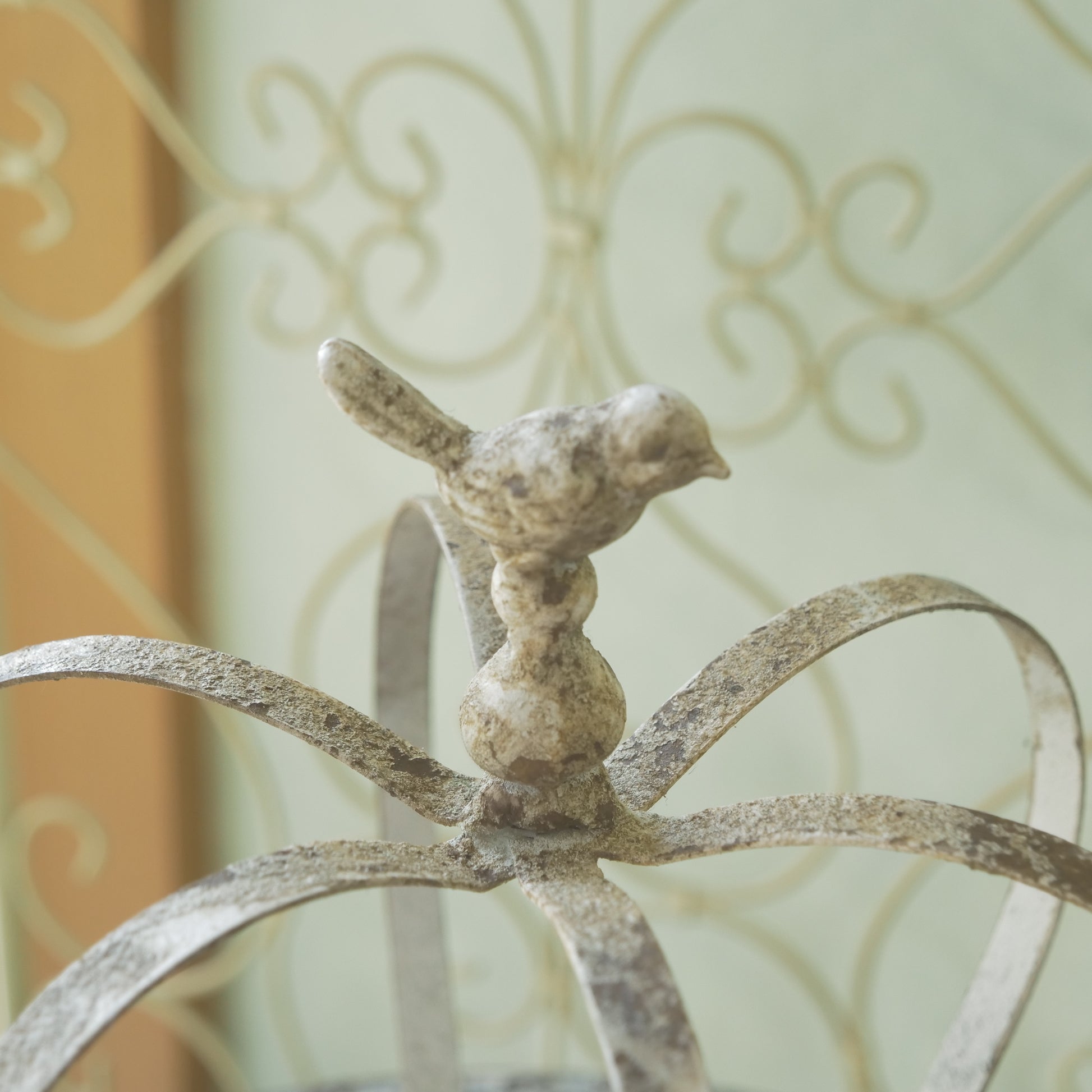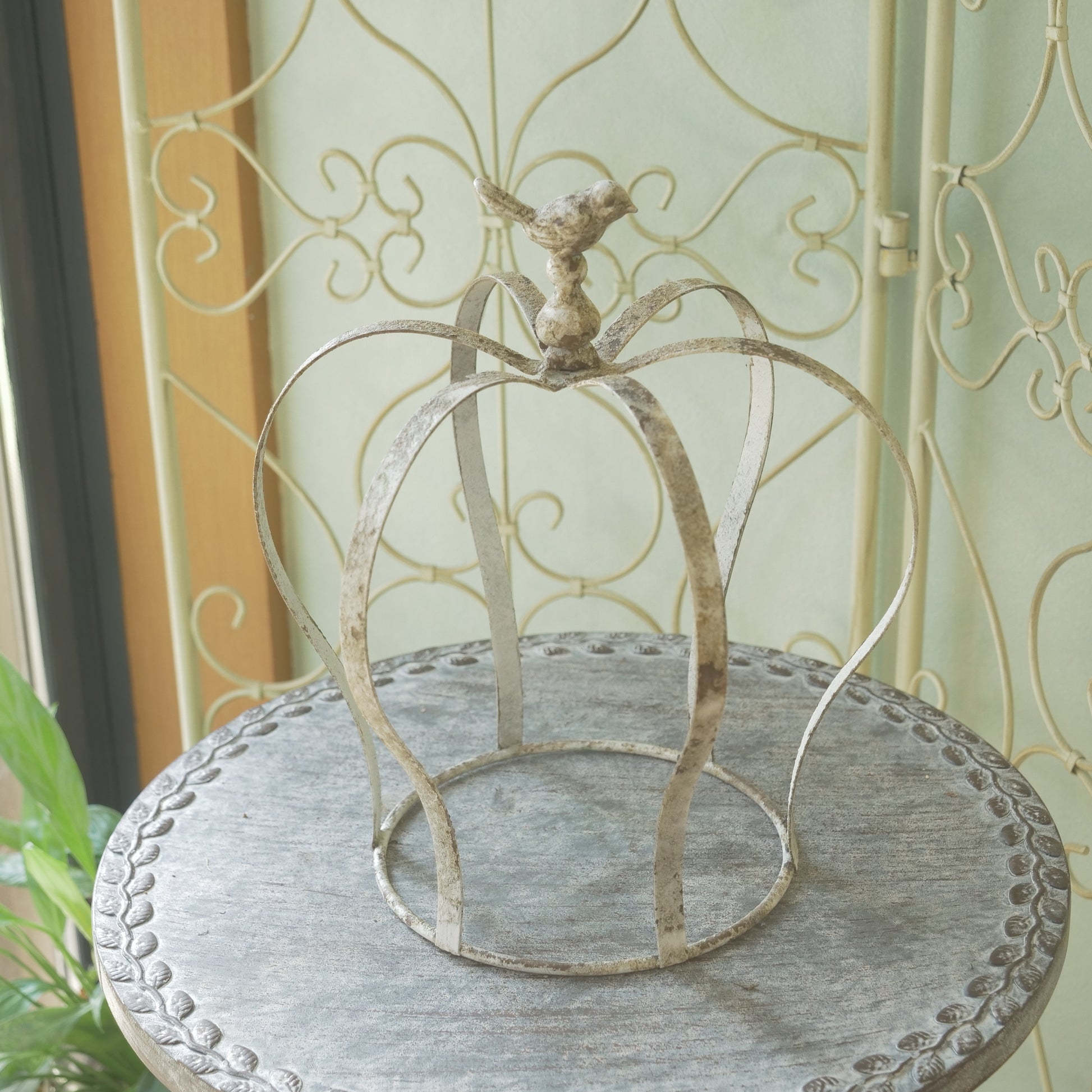 鳥のモチーフが可愛い、アンティークな雰囲気のクラウン型のケージです。鉢の上に置いて飾ると素敵ですよ。なかなか無いデザインですよね。庭にあると素敵だなと思います。