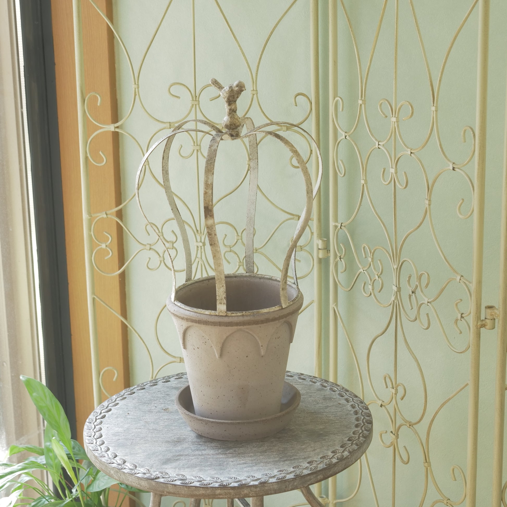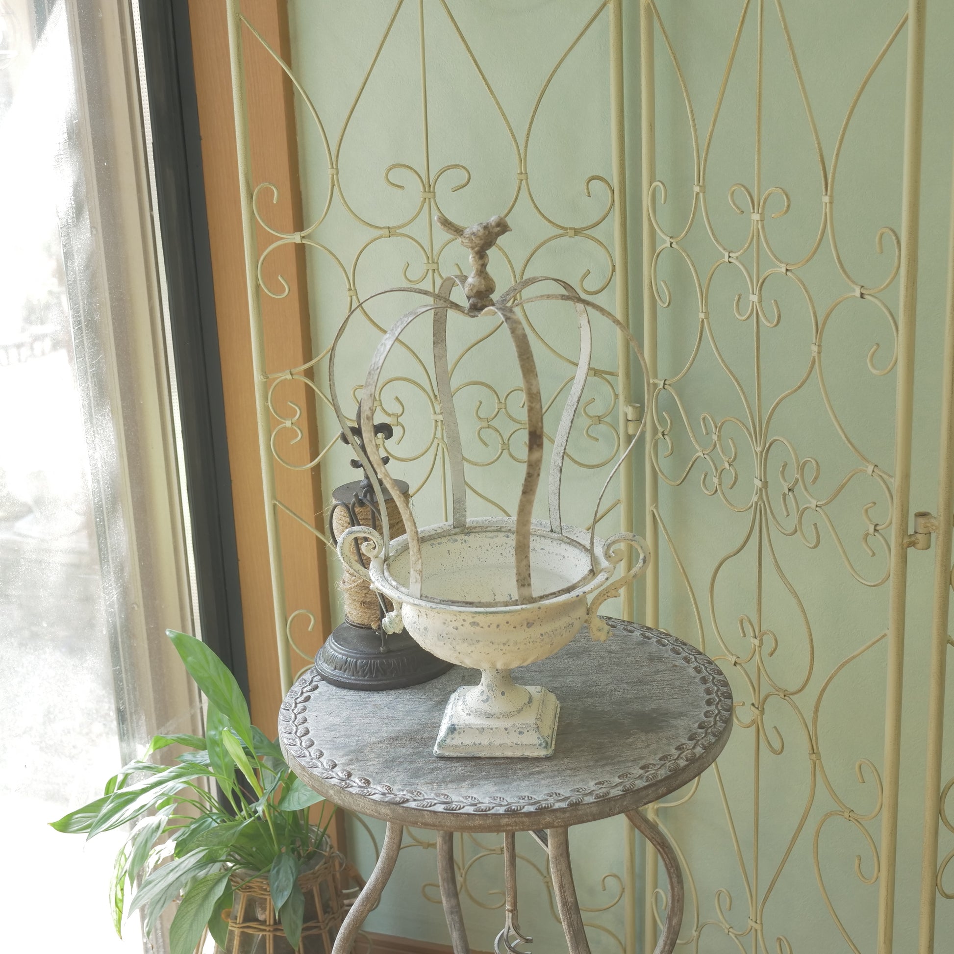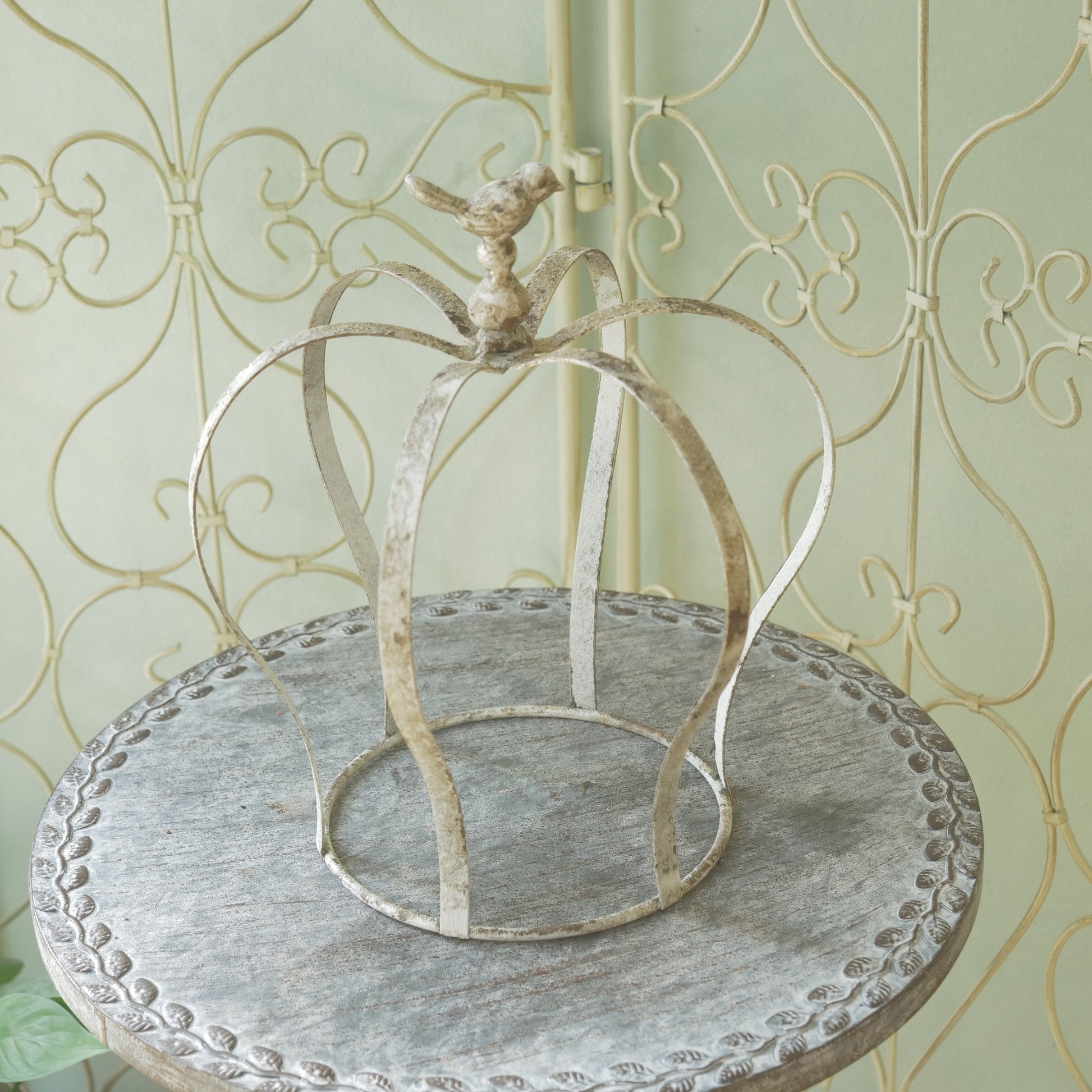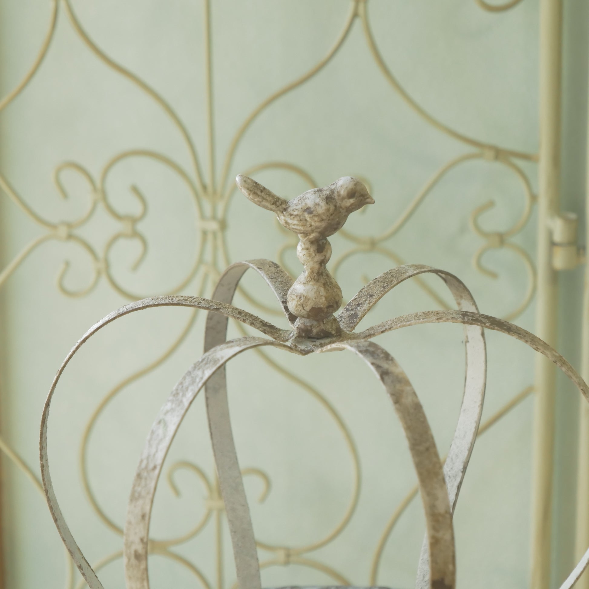 鳥のモチーフが可愛い、アンティークな雰囲気のクラウン型のケージです。鉢の上に置いて飾ると素敵ですよ。なかなか無いデザインですよね。庭にあると素敵だなと思います。