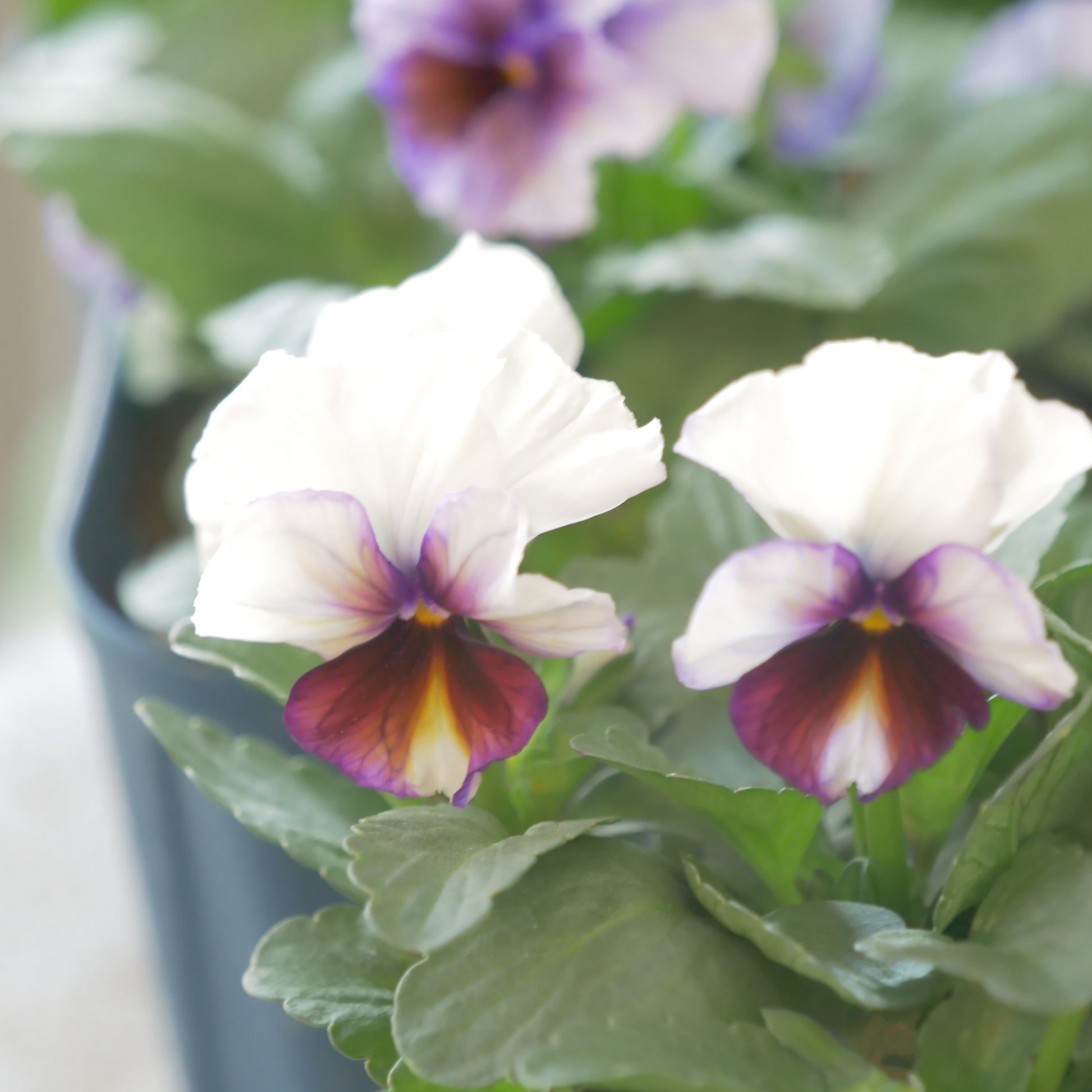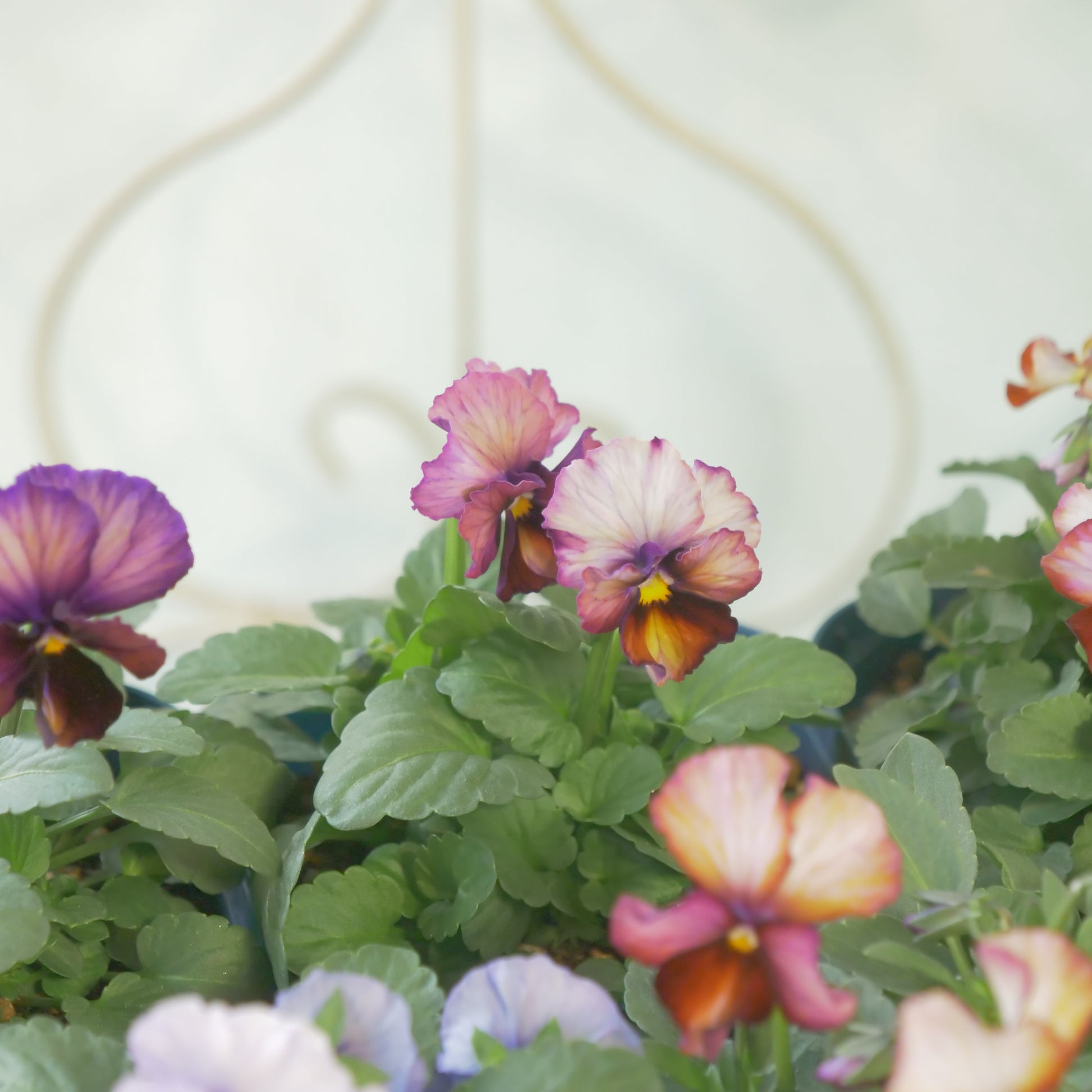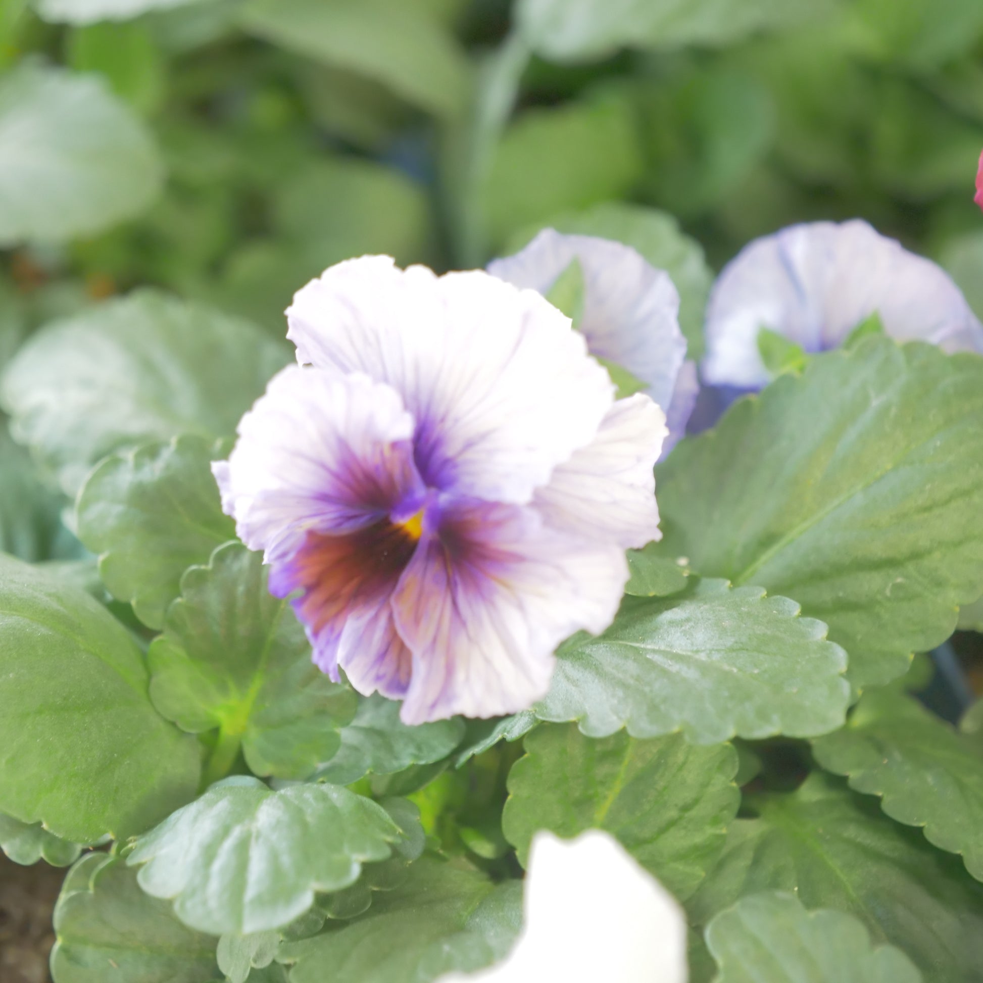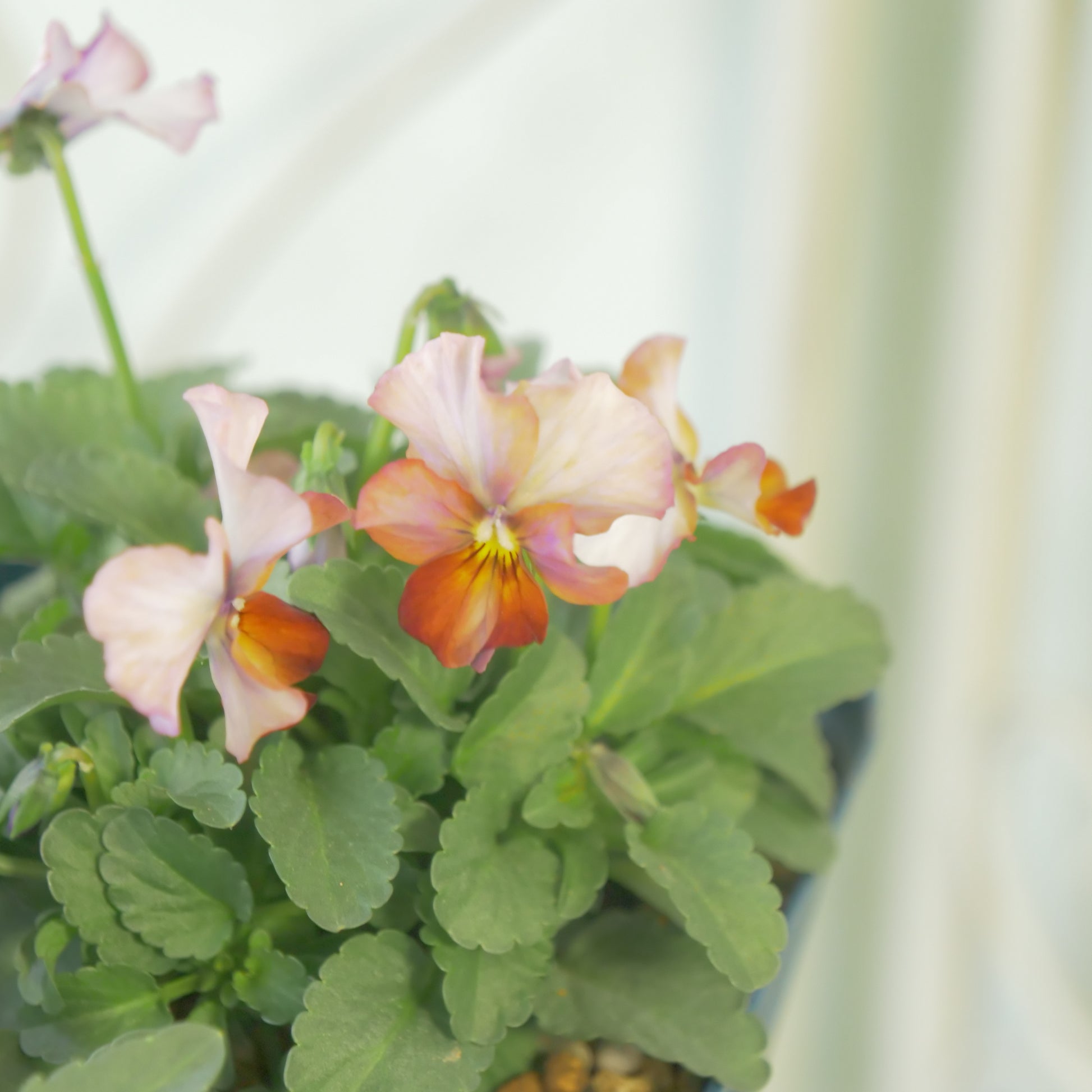 こちらは、佐藤園芸さんオリジナルビオラ【ヌーヴェルヴァーグ】です。シックな水彩画のような花色です。たくさんの花が咲くと、とても綺麗です。