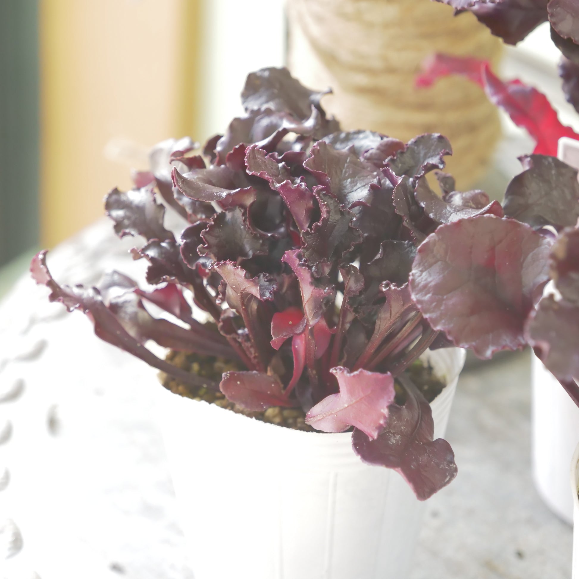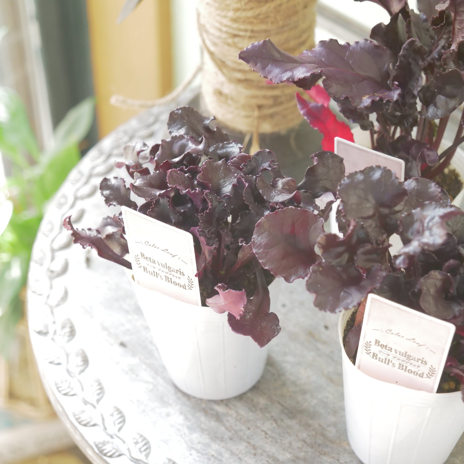 こちらの奥田園芸さん生産のビート ブルズブラッドは、寄せ植えに使いやすいように、2~3株植えに仕立てられています。分割しやすいです。葉牡丹は色変化していきますが、ビートは年明けまで綺麗な色を保ちます。常緑で、寒さに強いです。シックなカラーが冬の花と相性抜群です。