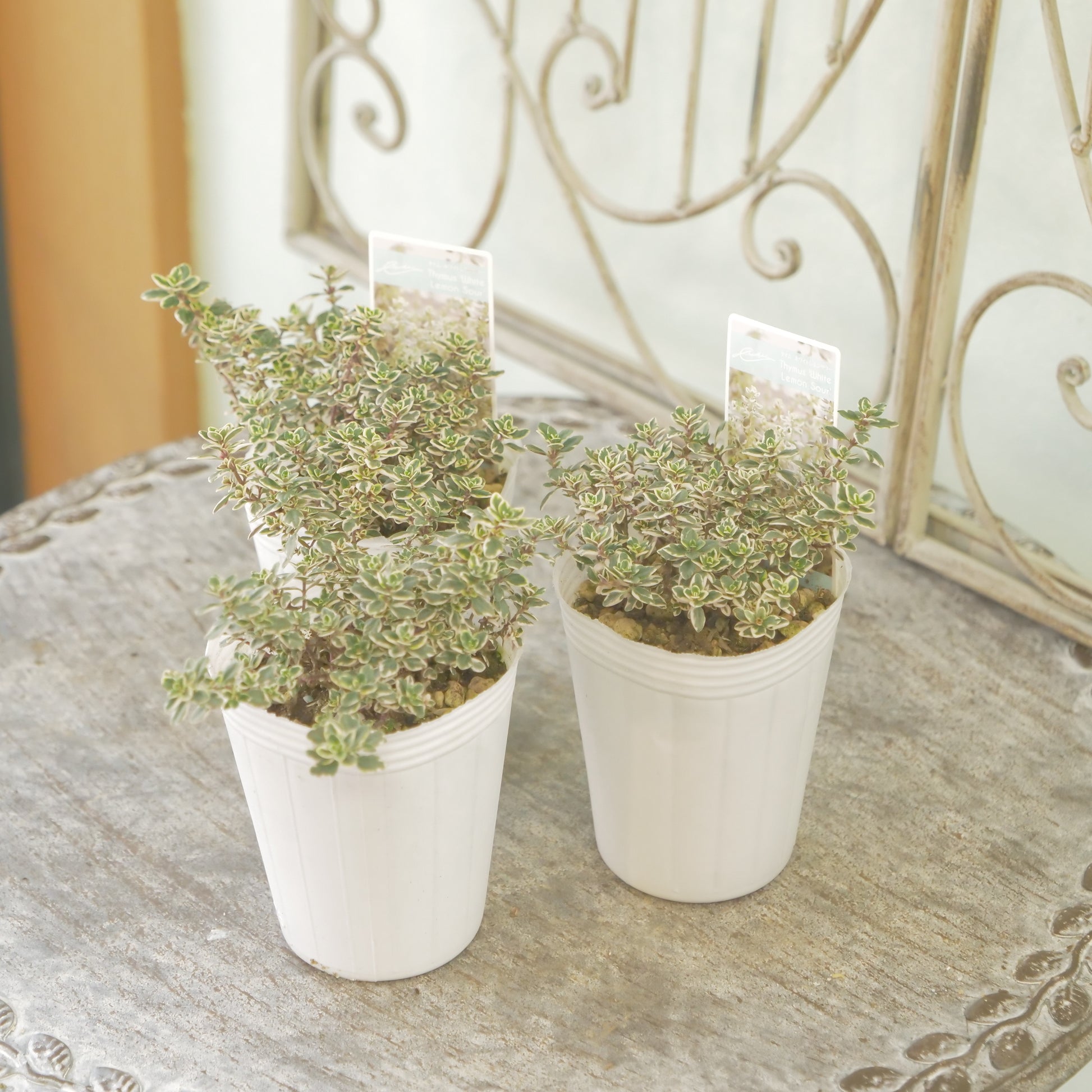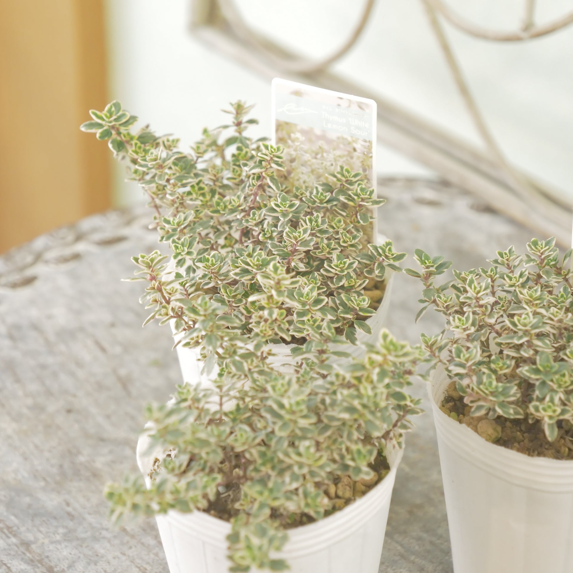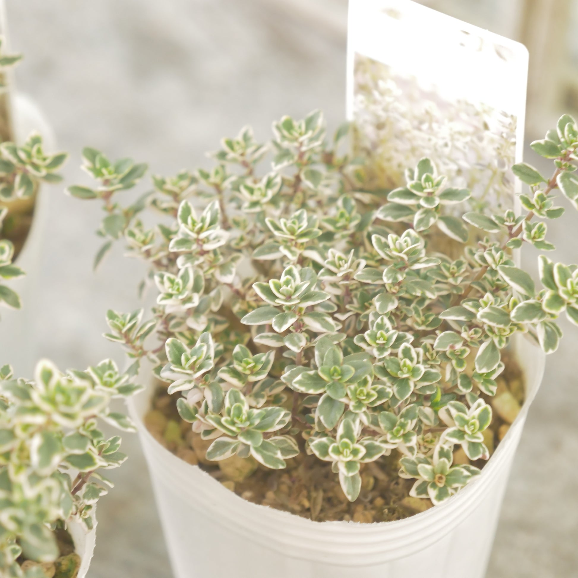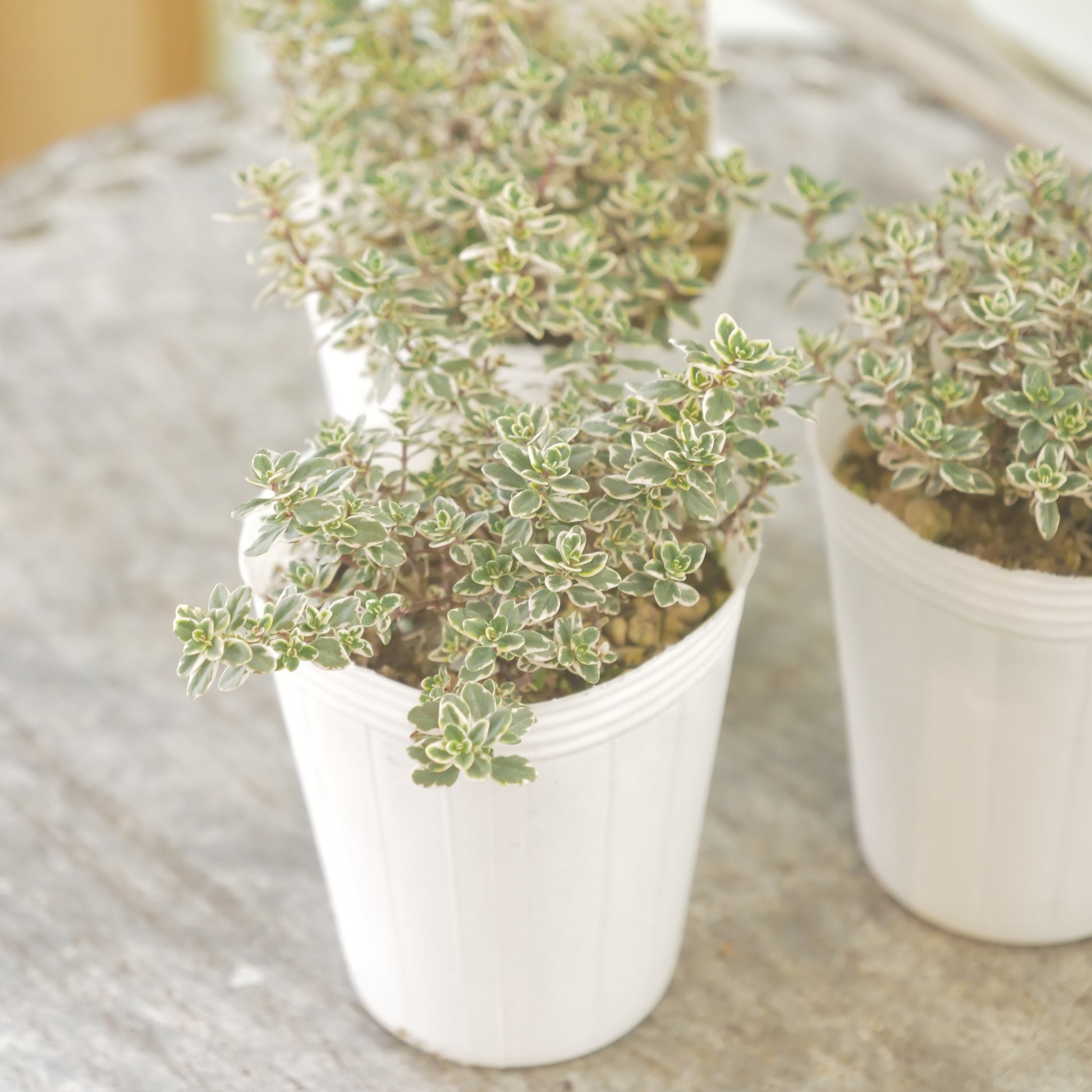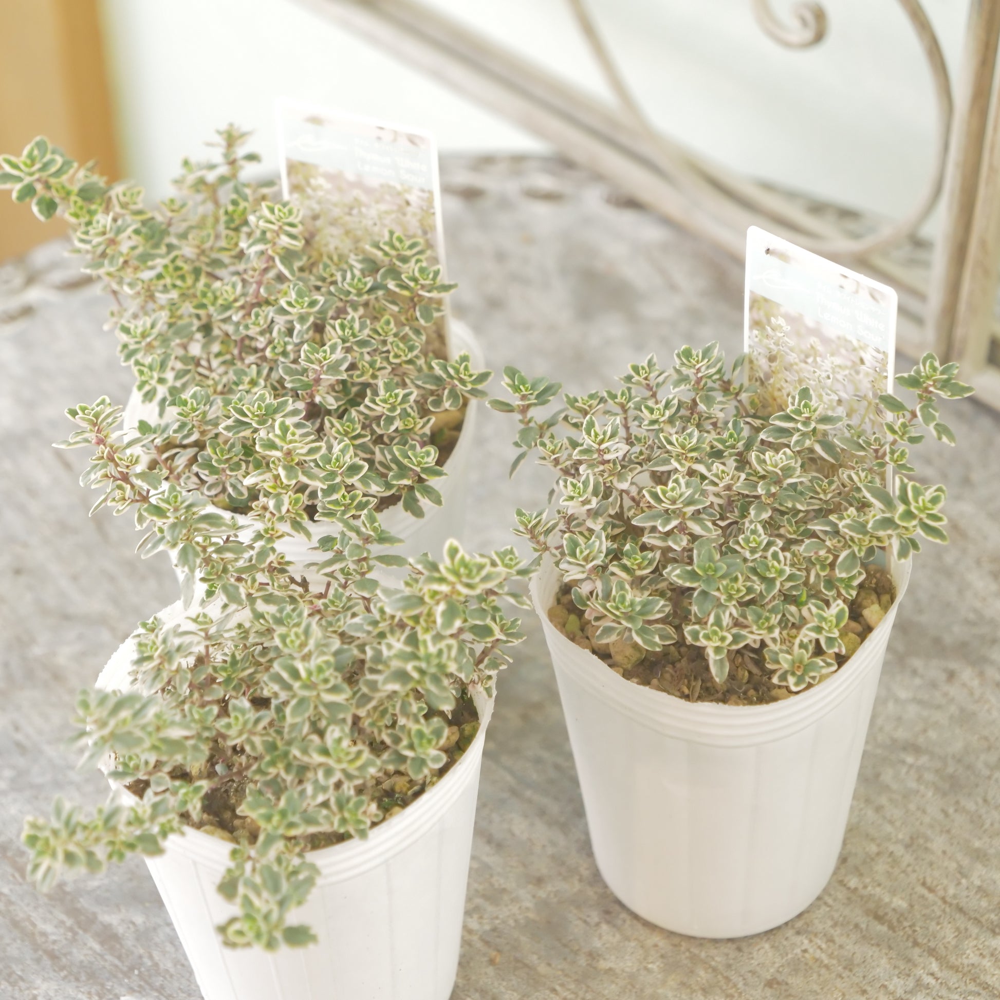 こちらの奥田園芸さん生産のタイムは、寄せ植えに使いやすいように、2株植えに仕立てられています。分割しやすいです。寄せ植えの前面や、リース型の寄せ植えにも使いやすいです。奥田園芸さんのリーフは、強健ですし、状態が良いのでオススメです。