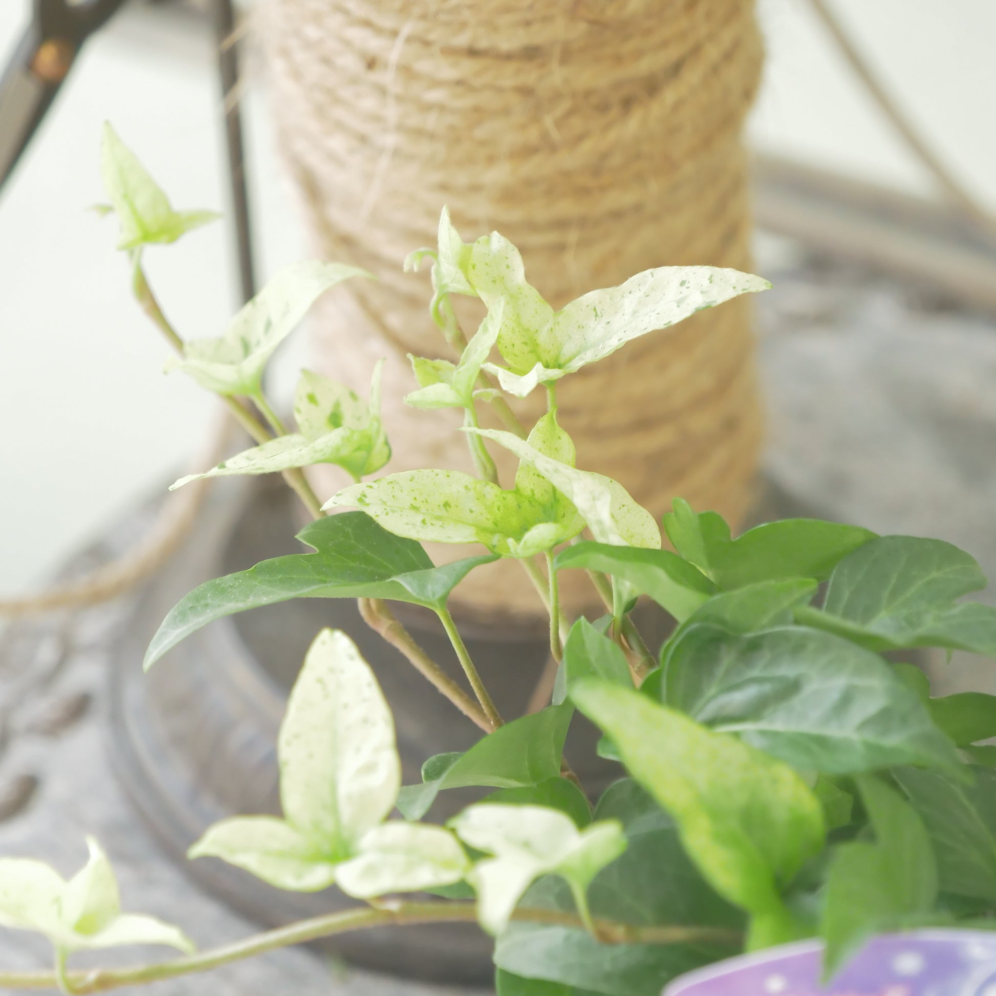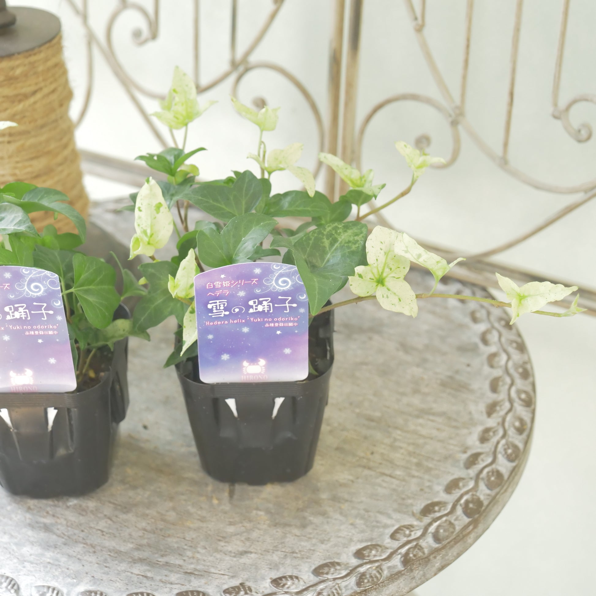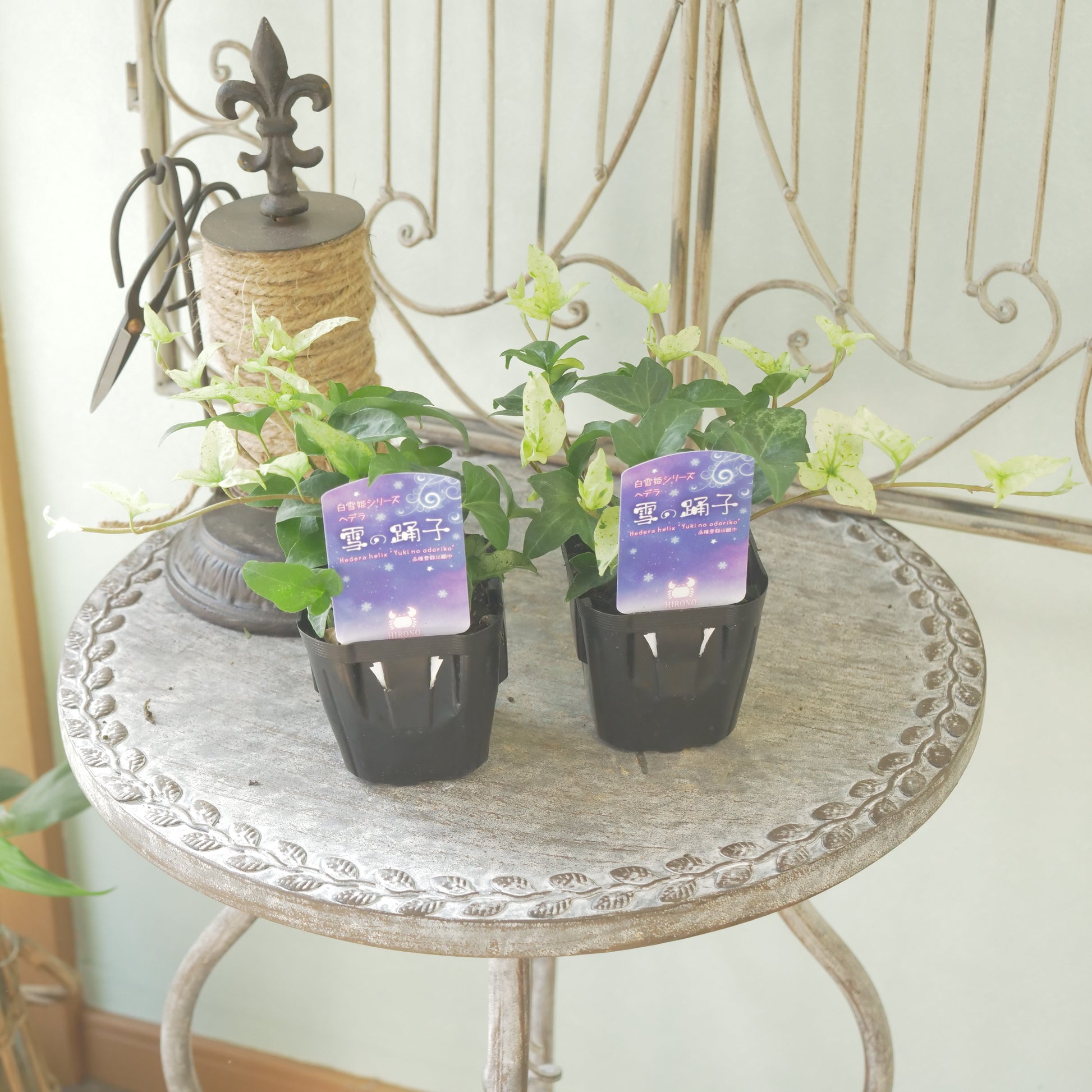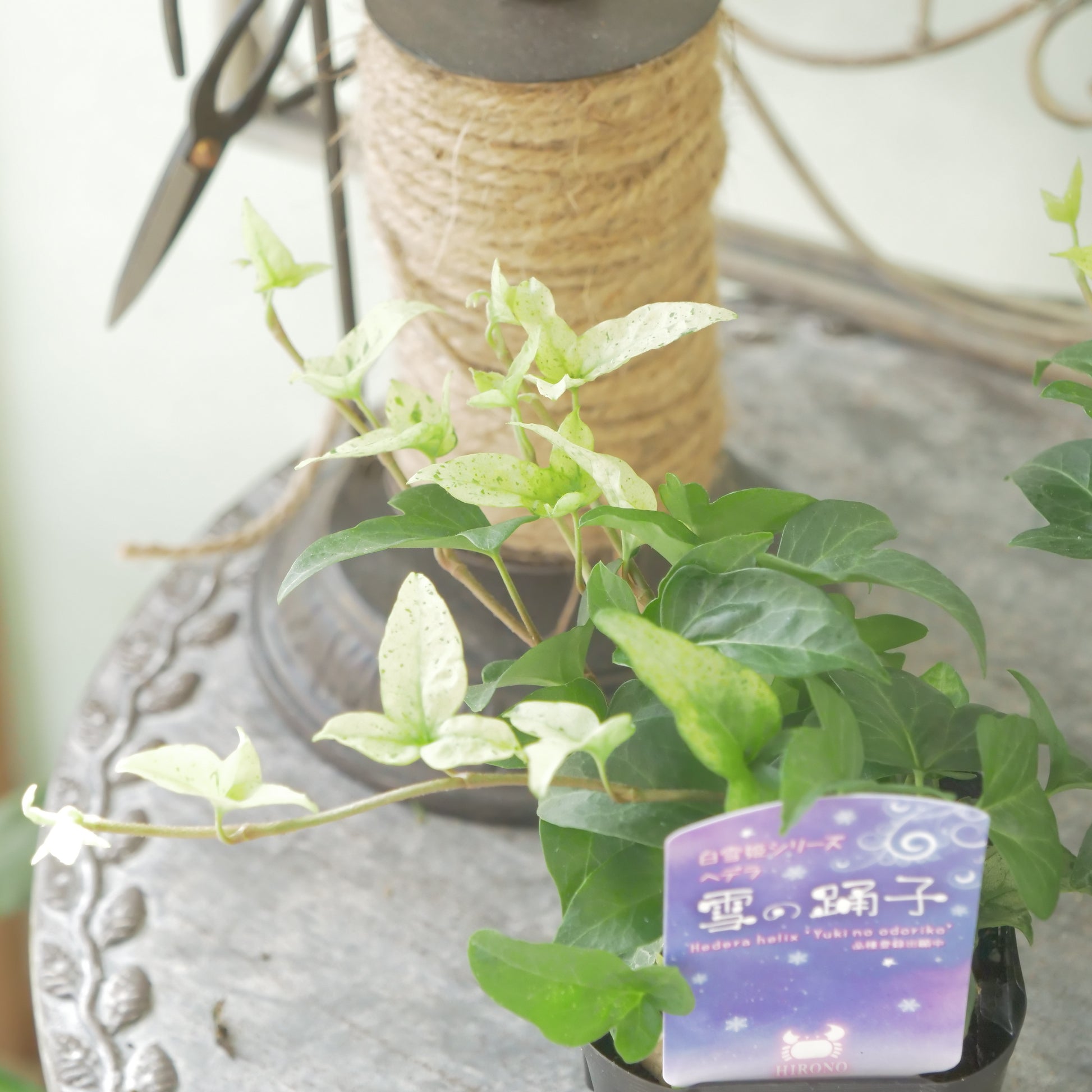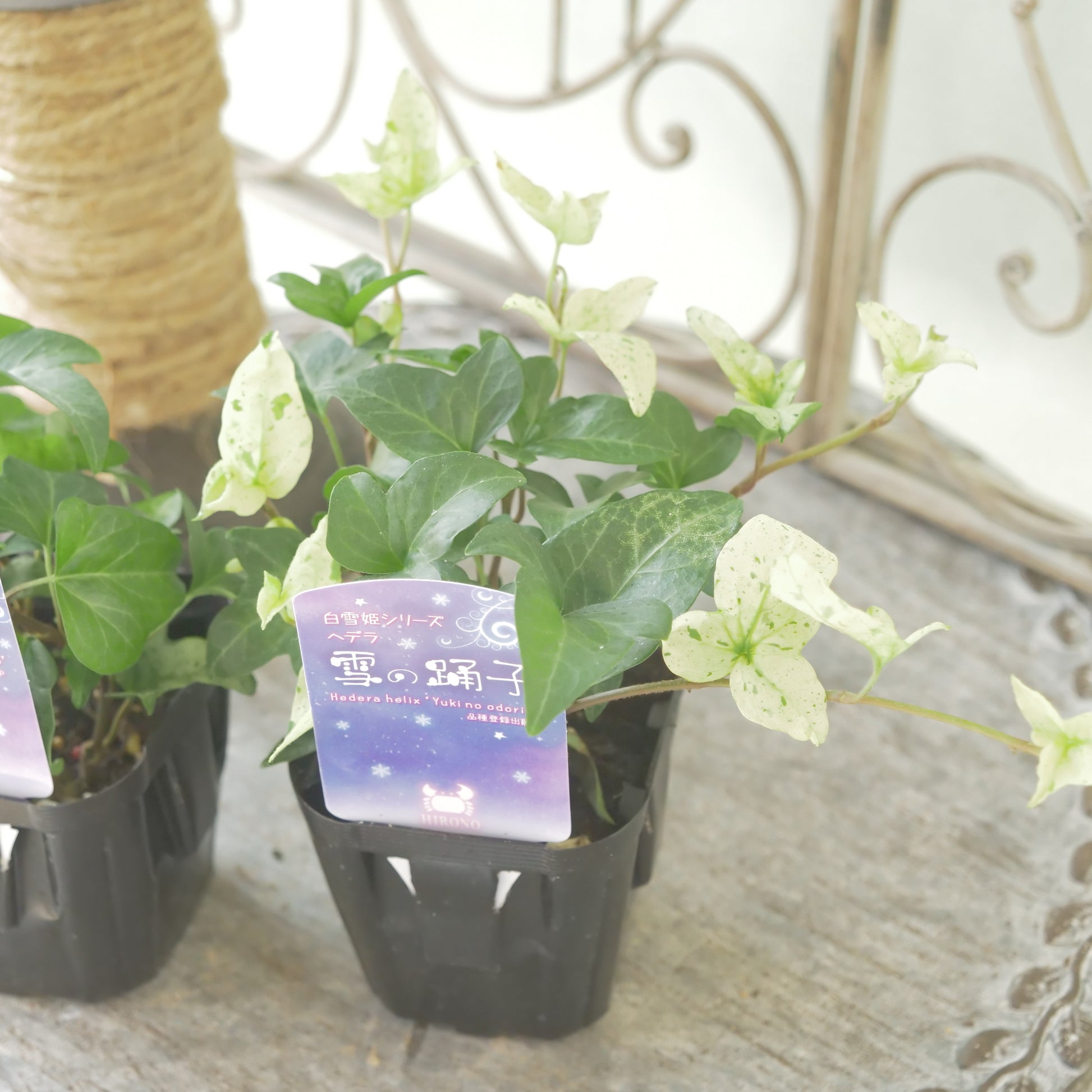 こちらは、広野園芸さんオリジナルのヘデラ【雪の踊子】です。なかなか出てこない、珍しい苗です。少し葉が縮れていて、素敵な雰囲気です。とても状態の良い、綺麗な苗です。冬の寄せ植えにも欠かせません。強健で、冬の寒さにも強く長く楽しむ事ができます。数本植えになっていますので、1本ずつ分解して、寄せ植えに使う事ができます。