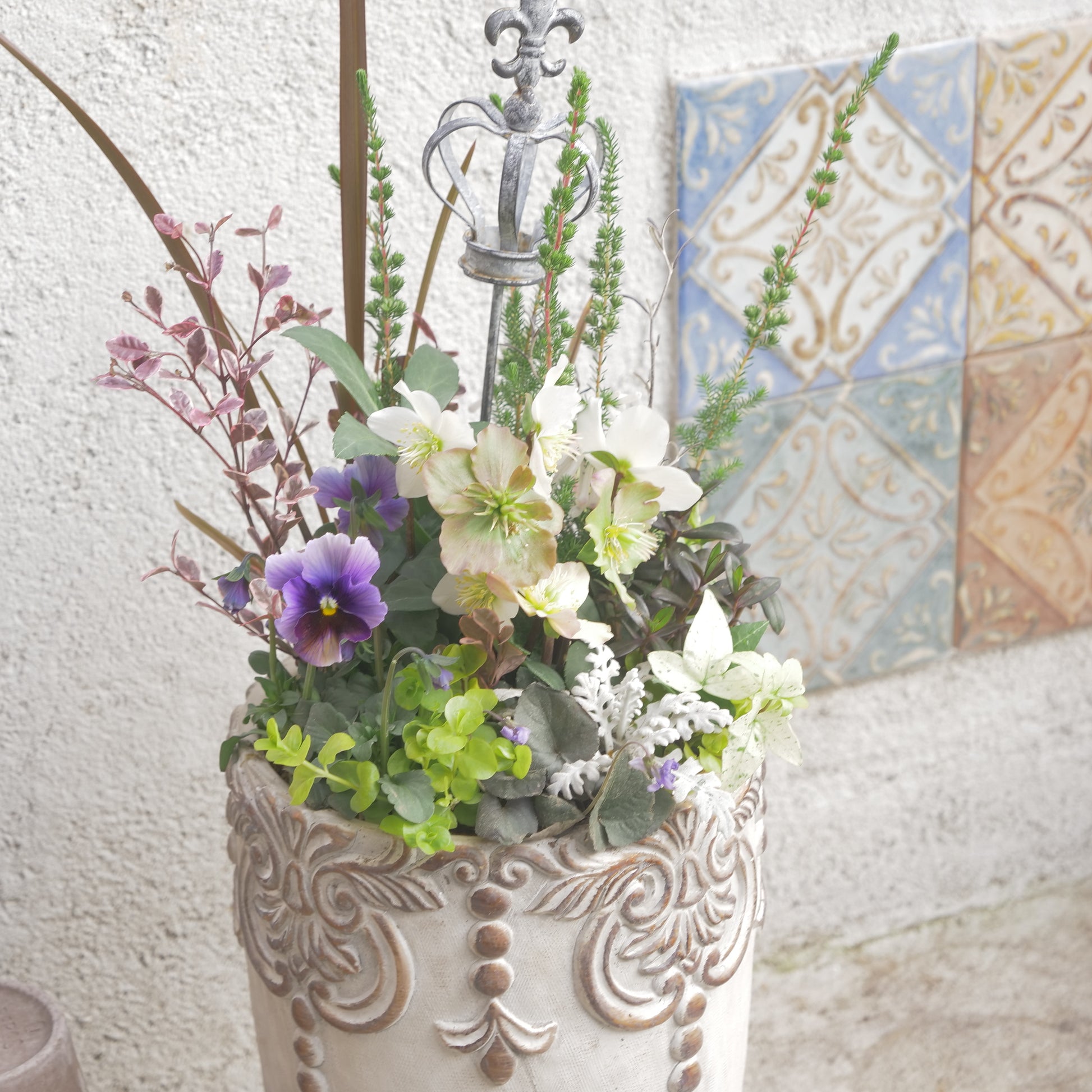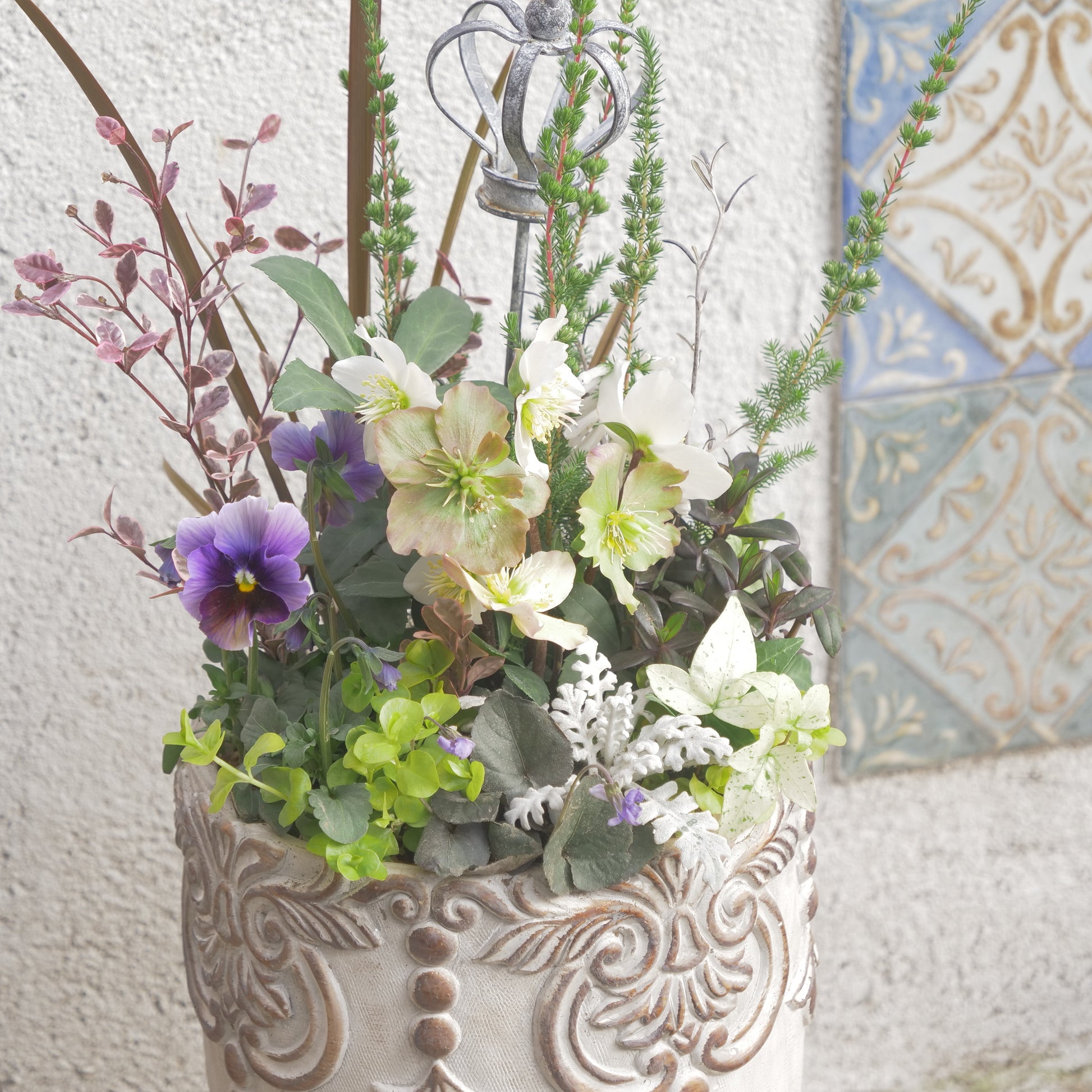 flowermagicオリジナル クリスマスローズの寄せ植え。クラウンのピック付き。