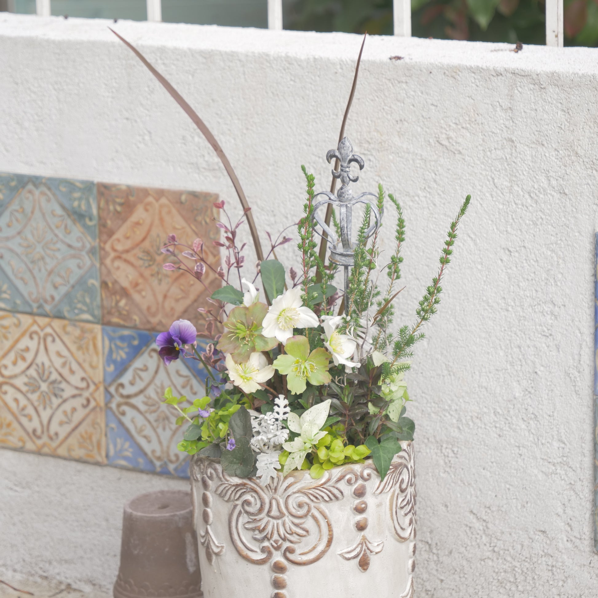 クリスマスローズ【パウロ】をメインに使った、シックな寄せ植え。